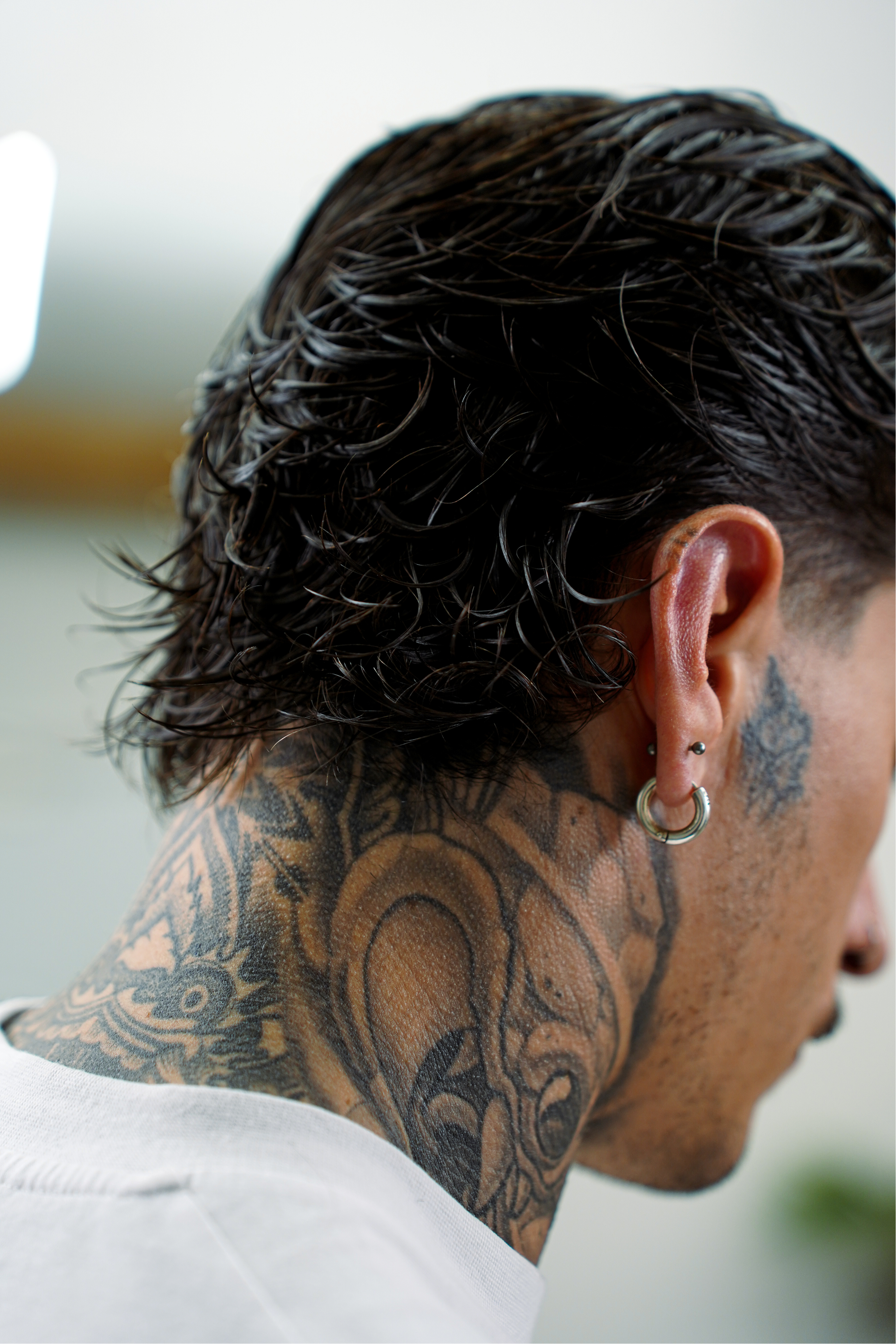 Add Salt Spray to damp or wet hair after washing for texture. Create a rough shape before applying Styling Cream.